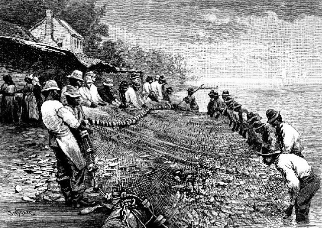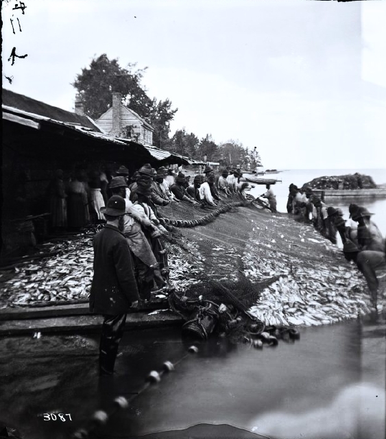 It was not uncommon to take a hundred thousand river herring in a haul, though most hauls were smaller, five thousand up to thirty thousand. Since it cost between five and ten thousand dollars to establish a fishery, only wealthy planters could afford the upfront costs. The vast majority of farmers gathered their fish for personal consumption in dip nets or bow nets.