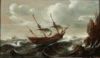Still, John White managed to locate a pair of dinky pinnaces that had been rejected for military service. Barely seaworthy, they were attacked by French pirates who playd extreemely upon us with their shot, hitting White in the side of the buttoke and robbing us of all our victuals, powder, weapons and provision… They aborted the expedition and limped back to England.