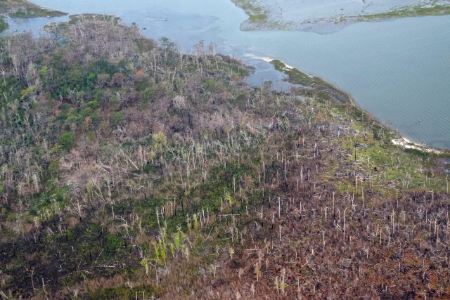 As sea level rises, salt water, from overwash of hurricanes, for instance, can kill plants that are not salt tolerant. These ghost forests are occurring on the Albemarle/Pamlico peninsula today. Mark Hibbs, South Wing SCRO
