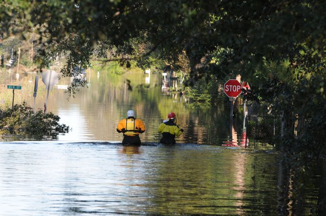 Managing flood waters after Hurricane Matthew. Almost one and a half billion dollars has been spent to clean up after Matthew and Florence alone. Photo by Leticia Samuels, USCG