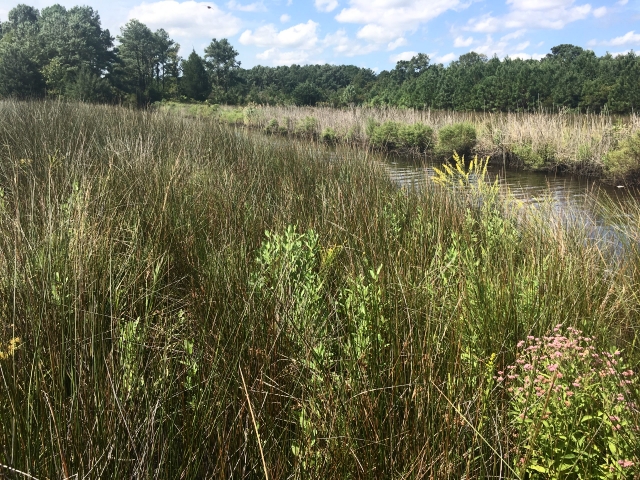 This former farm has been converted to wetlands. Rainfall from the farm once took only two minutes to run off into nearby waters. Now, drainage from these wetlands is naturally slowed, taking more than two months to find its way into creeks. NC Coastal Federation