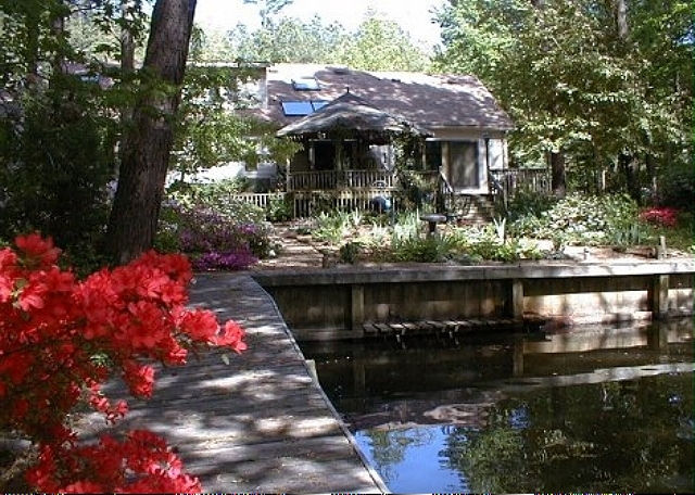 Photo of our boardwalk circa 1988. Note mini-dock we had for disembarking canoes and horizontal timber visible to the right. Today these are totally submerged except on rare occasions when the wind blows steady out of the north and water is pushed to the south. aheronsgarden.com