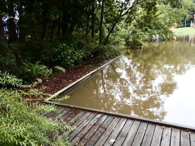 It’s not unusual for a storm to cause water to rise to the top of the bulkhead. After most storms some parts of our woodlands flood. aheronsgarden.com