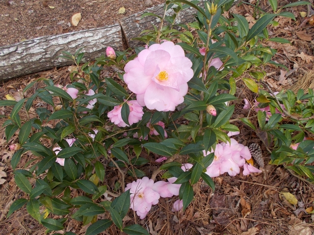 When camellias are massed in a bed, nobody gets the limelight. Everybody gets the limelight.