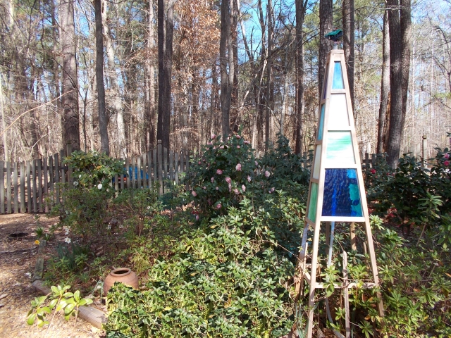 We come back to our favorite variegated japonica that we can view from our window, a punctuation mark at the entry to our woodland garden