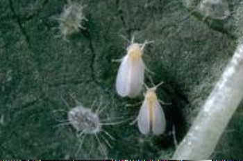 White flies, greatly enlarged, one of the sap-suckers. UCa photo