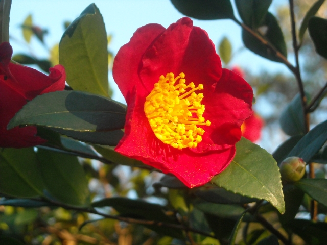 In fifteen years this sasanqua camellia ‘Yuletide’ has thrived with no need for special care