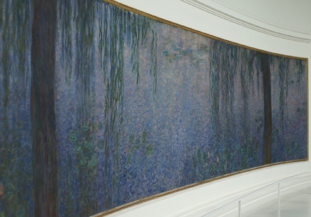 Accepting a commission from La Musee de L’Orangerie, Monet began a final series of twelve large waterlily paintings sized to fill the walls of two rooms.