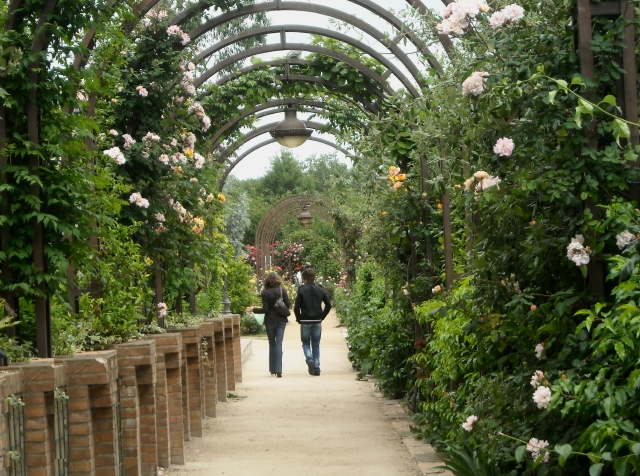 High above the avenues we walked through arbors of roses — yes, more roses.