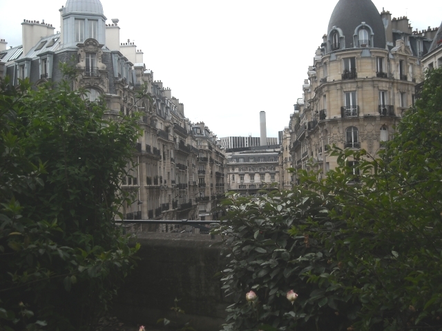 When we crossed over an avenue, the corridor widened and plantings thinned and we could catch spectacular panoramas of rooftops bristling with chimneys in tranquil old neighborhoods.