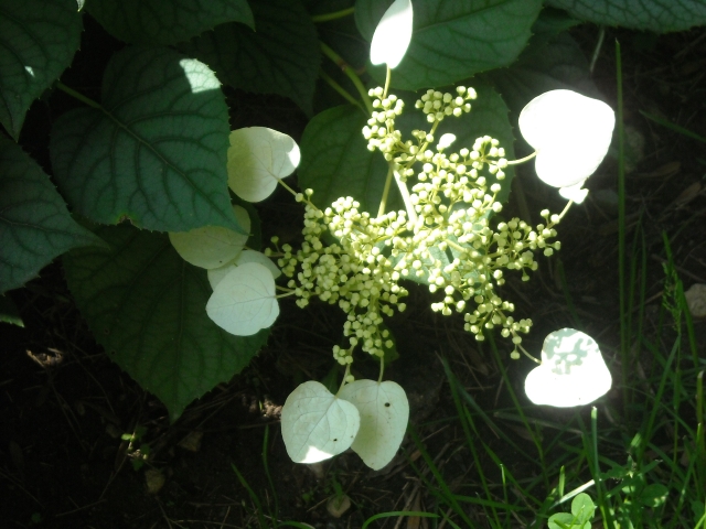 The flat-topped blooms in May look like frothy Queen Anne’s Lace. Tiny fertile inner flowers make seeds for new plants. Showy outer sepals, flashy beacons that draw bees and other pollinators, give each bloom its pizzazz.