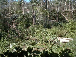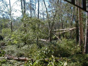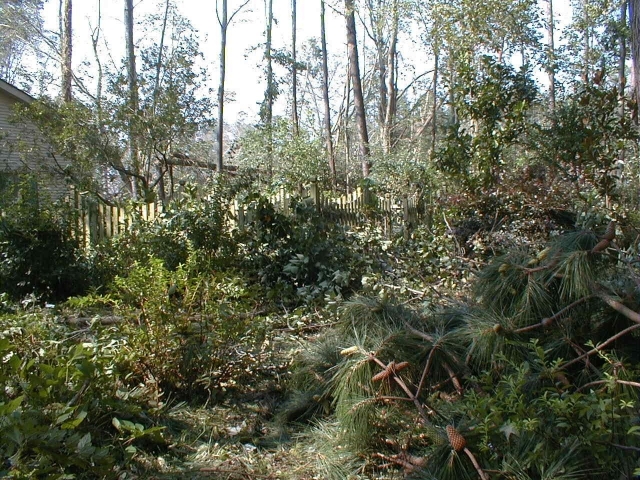 How about Raking for Number One in The Grand Plan. Yes, we can’t go wrong with raking. Imagine all the mulch we’d have if we chipper-shredded all this stuff! Number Two in The Grand Plan: Shred and recycle litter from Isabel.