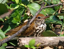 Catbirds and mourning doves, never regulars in our dense woods, came to explore the open spaces. Hairy woodpeckers inspected damaged trees. Future living quarters? Emergency bug-meals? A wood thrush scratched for insects. Shy and retiring, we usually don’t see him. He serenades us with his flutey song from deep in the woods during late spring.
