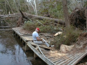 It is a mat of wetlands and dredge spoils, a lumpy mix of half-decayed logs and pottery clay, all woven together by a network of fine but tough roots. After the storm it was an adventure to navigate, an ankle-breaker and a knee-twister.