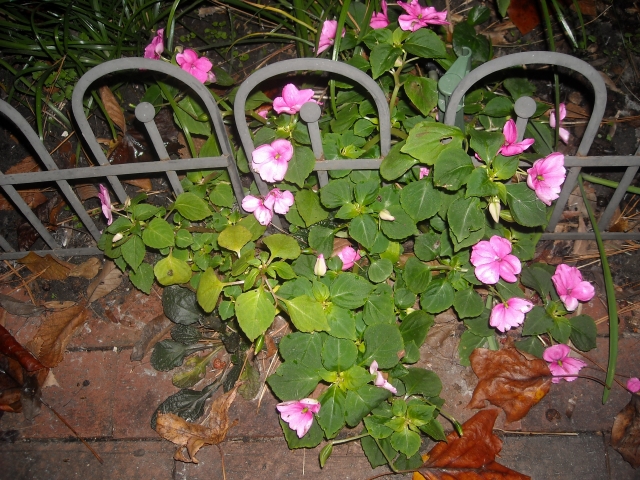 Even smoke bush, a sad sack by summer’s end, sprouted fresh leaves cast with rosy tones. Seedling impatiens went wild along the paths, and plants bloomed out of season. Was it the combination of sunny days and cool nights? Was this how plants in full sun usually act? Were plants racing to insure survival after a catastrophe?
