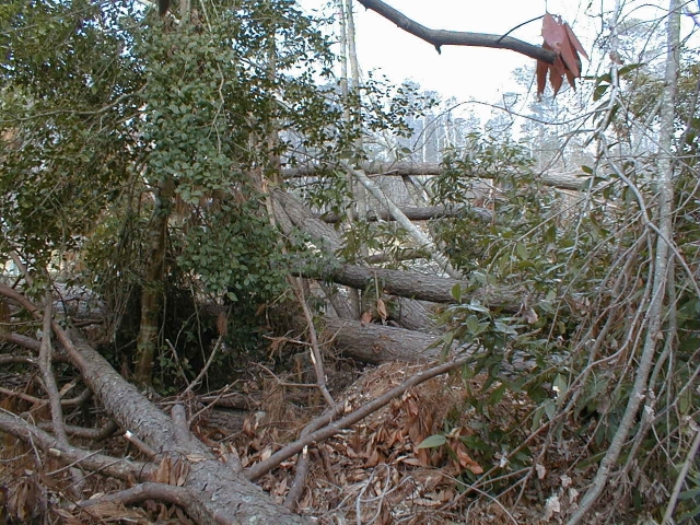 Three lanky whippersnappers fall in braided embrace, slammed into by our birdhouse tree. Twin pines snap as one, cut off at the knees. Like matchsticks, two old, heavy limbs from the crown of a maple are twisted and tossed.