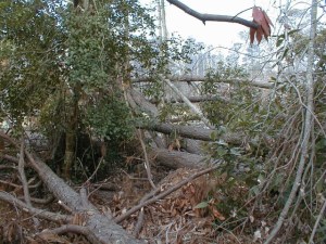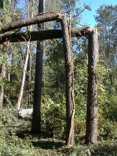 Oh, Isabel has a wicked sense of humor. Before she snaps the phone lines, she snaps a pine, twisting and tearing at a thick tangle of confederate jasmine growing round a neighboring pine. A second howl, and the jasmine is neatly set to rights, barely a leaf disturbed.