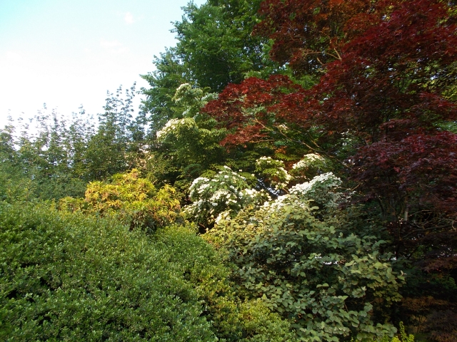 Behind the magnolia a bosk ascends a rise. Its woodland foliage glistens in shifting sunbeams and ligustrum blooms sparkle. In the dusky silence, the garden seems to fully enclose us. Visitors speak in murmurs, or not at all, in this sanctuary from the avenues beyond.