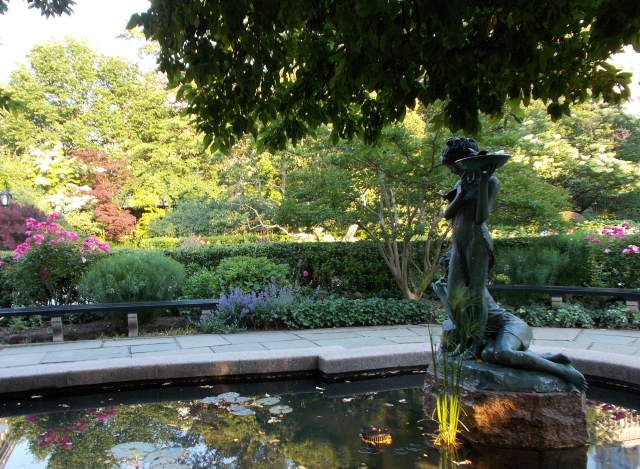 Inevitably the paths lead you to a little pond bowered by a magnolia and strewn with water lilies. It’s a tranquil place and benches invite you to set a spell and gaze at the enchanting statue of a young boy and girl modeled after the children in Frances Hodgson Burnett’s Secret Garden.
