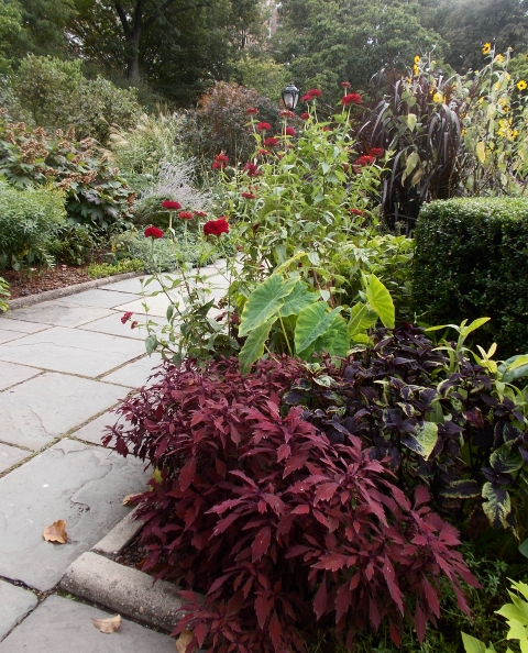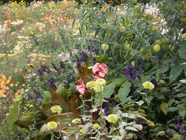 Annuals and grasses were in splendid regalia, dahlias and canna were flirting with us, tugging at us with their come-hither colors and seductive curves, and there was not a square inch of barren soil to be found.