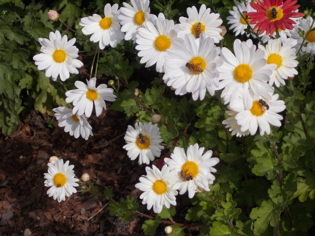 . . .while busy, discreet populations of honeybees worked ripe flowers.