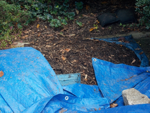 Maybe the plants were doing so well because gardeners used this rich compost liberally, here being stored at the edge of a path between gardens.