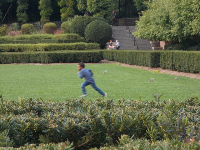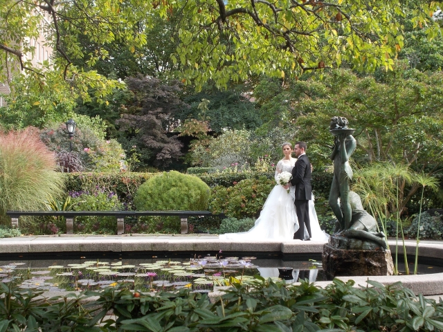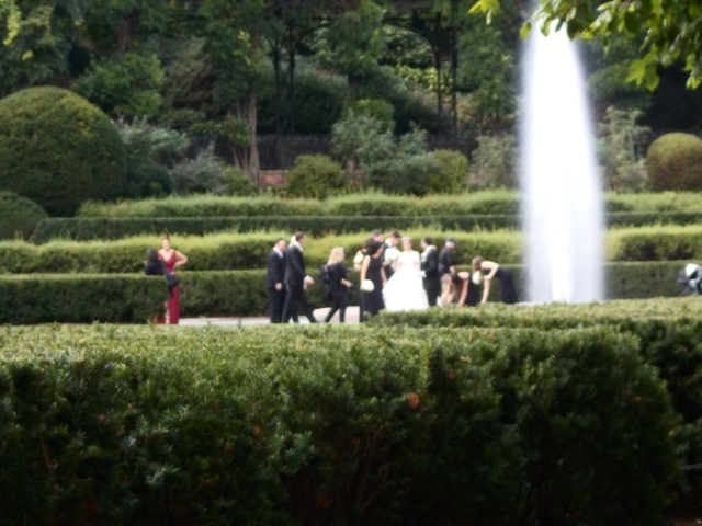 Bridal parties were posing for pictures, a warm and bright October sun caressed the garden, thick foliage muffled city sounds, and all was right and good and at peace in this little corner of the world.