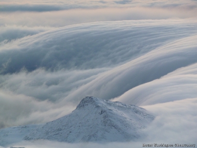 We looked up and saw a tower made headless in he fog. Were we here? Did we actually climb Mt. Washington?